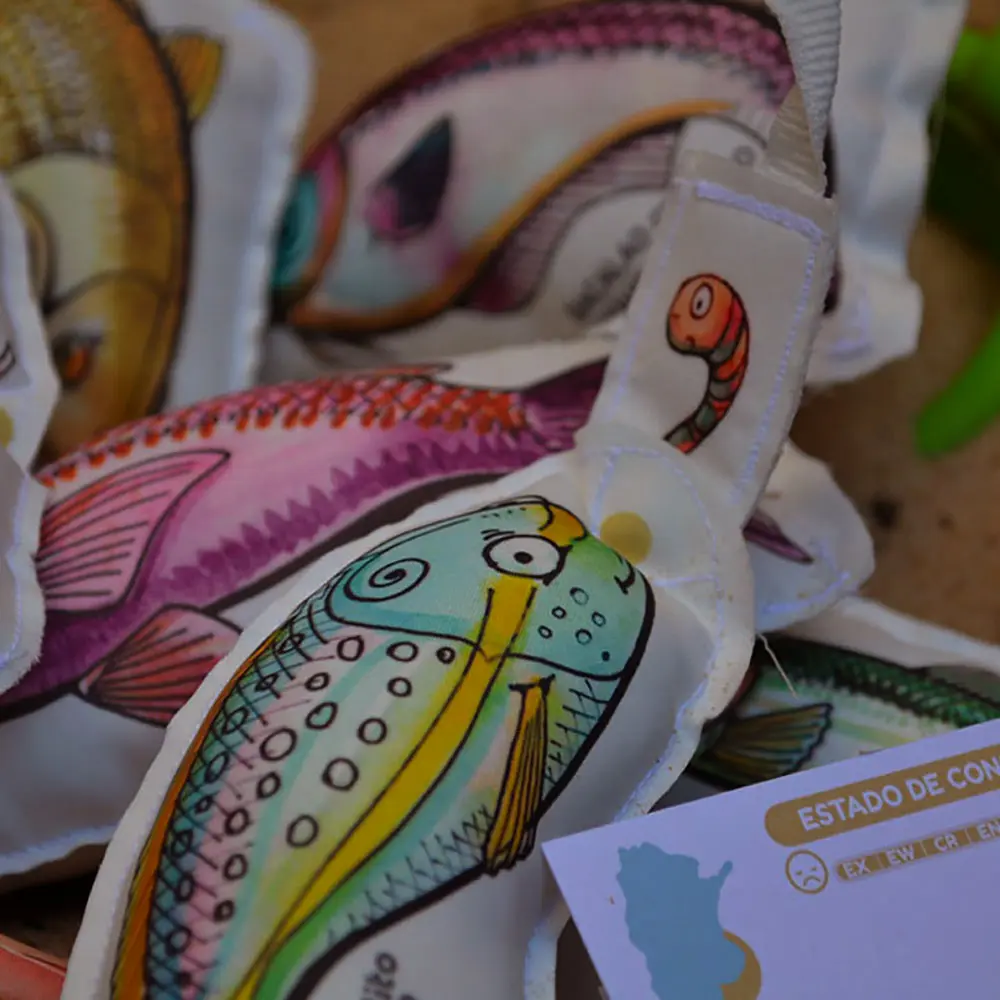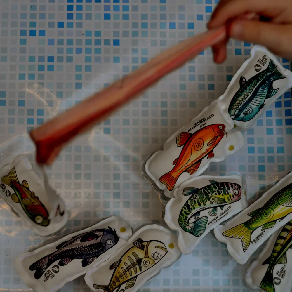 Es un juego de pececitos blandos de tela, de diferentes especies autóctonas del territorio Argentino.